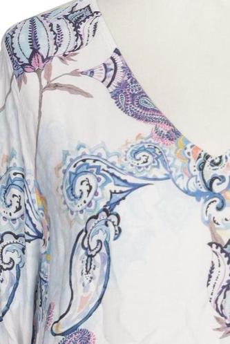 | Details | Chiffon, Dreiviertelarm, V-Ausschnitt, verschlusslos, Floral, Paisley |