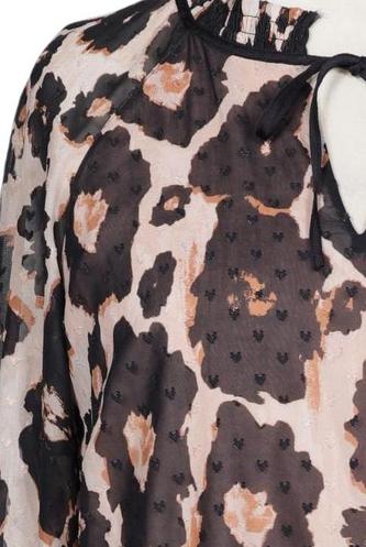 | Details | Rüschen, Chiffon, Langarm, V-Ausschnitt, verschlusslos, Leopard |
