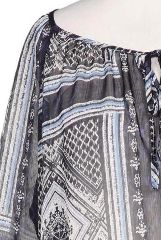 | Details | Chiffon, Dreiviertelarm, Rundhals, verschlusslos, Gummizug/Tunnelzug, Motivprint |