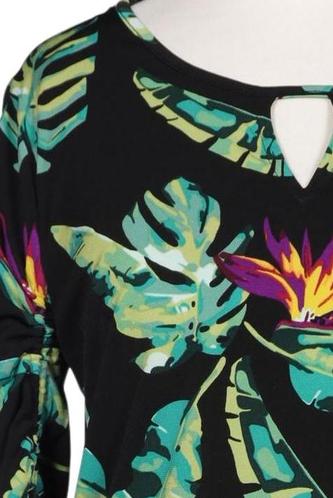 | Details | Jersey, Cutouts, Dreiviertelarm, Rundhals, verschlusslos, Gummizug/Tunnelzug, Floral |