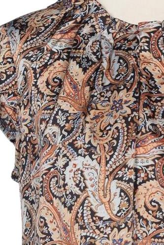 | Details | Satin, Kurzarm, Rundhals, verschlusslos, Paisley |