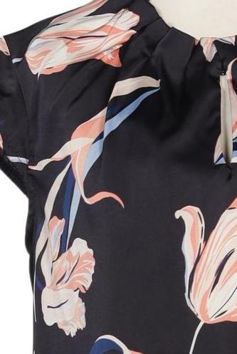 | Details | Satin, Kurzarm, V-Ausschnitt, verschlusslos, Floral |
