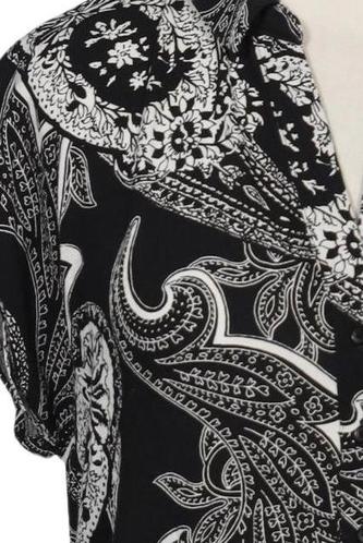 | Details | Jersey, Kurzarm, V-Ausschnitt, verschlusslos, Paisley |