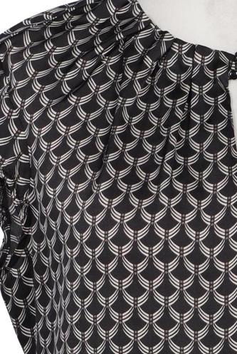 | Details | Satin, Kurzarm, V-Ausschnitt, verschlusslos, Rauten |