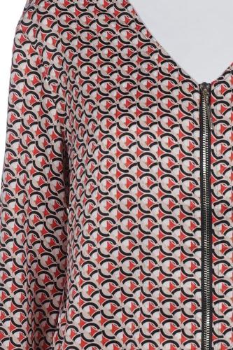 | Details | Satin, Langarm, V-Ausschnitt, Front Reißverschluss, Motivprint |