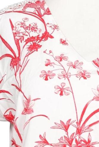 | Details | Jersey, Kurzarm, V-Ausschnitt, verschlusslos, Floral |