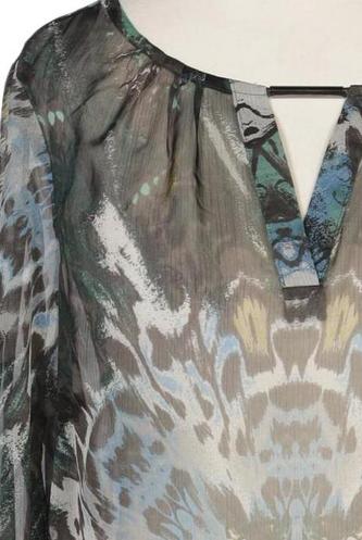 | Details | Chiffon, Langarm, V-Ausschnitt, verschlusslos, Motivprint |