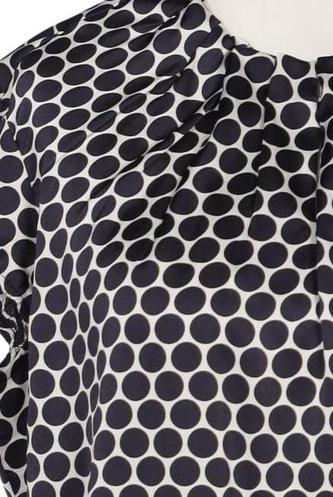 | Details | Satin, Kurzarm, Rundhals, verschlusslos, Punkte |