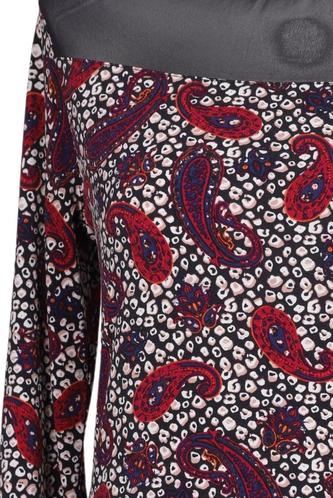 | Details | Langarm, Rundhals, verschlusslos, Paisley |