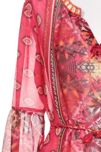 | Details | Chiffon, Langarm, Bindegürtel, V-Ausschnitt, verschlusslos, Ethno |
