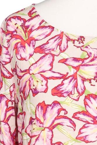 | Details | Jersey, Dreiviertelarm, V-Ausschnitt, verschlusslos, Floral |
