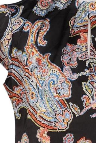 | Details | Satin, Kurzarm, Rundhals, verschlusslos, Paisley |