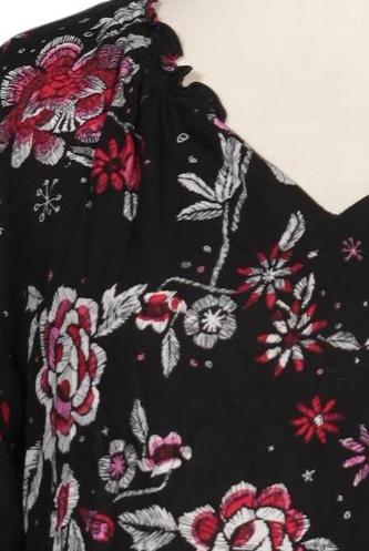 | Details | Jersey, Rüschen, Langarm, V-Ausschnitt, verschlusslos, Floral |