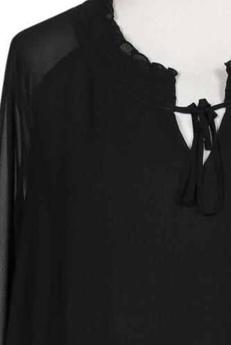 | Details | Rüschen, Chiffon, Langarm, V-Ausschnitt, verschlusslos, Gummizug/Tunnelzug, Einfarbig |