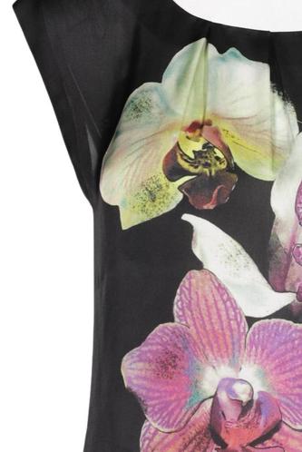 | Details | Satin, ärmellos, Rundhals, verschlusslos, Floral |