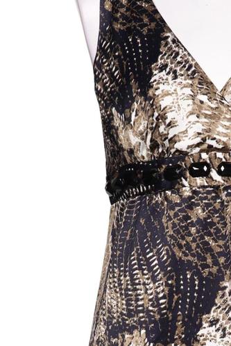 | Details | Satin, ärmellos, V-Ausschnitt, Motivprint |