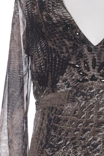 | Details | Chiffon, Dreiviertelarm, Bindegürtel, V-Ausschnitt, Motivprint |