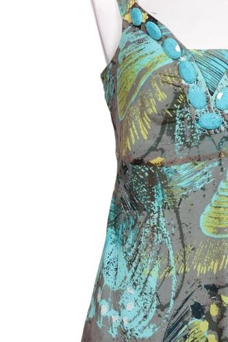 | Details | Rüschen, ärmellos, V-Ausschnitt, Motivprint |