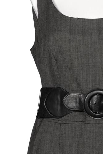 | Details | ärmellos, Bindegürtel, Rundhals, Reißverschluss/Knöpfe hinten, Nadelstreifen |