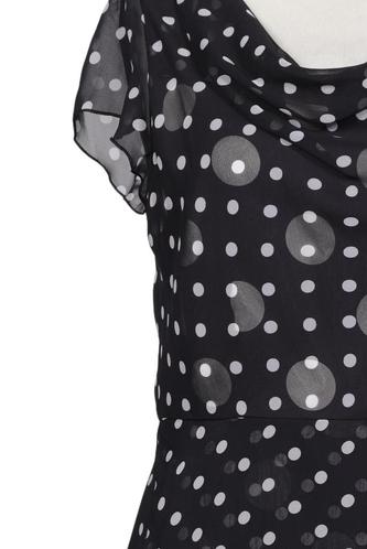 | Details | Chiffon, Kurzarm, V-Ausschnitt, Reißverschluss/Knöpfe hinten, Punkte |