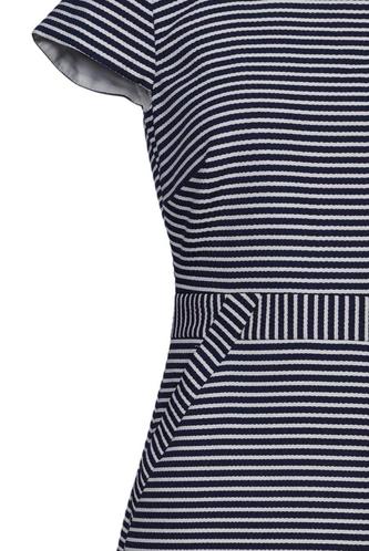 | Details | Kurzarm, Bindegürtel, Rundhals, Reißverschluss/Knöpfe hinten, Streifen |