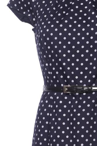 | Details | Kurzarm, Bindegürtel, V-Ausschnitt, Reißverschluss/Knöpfe hinten, Punkte |