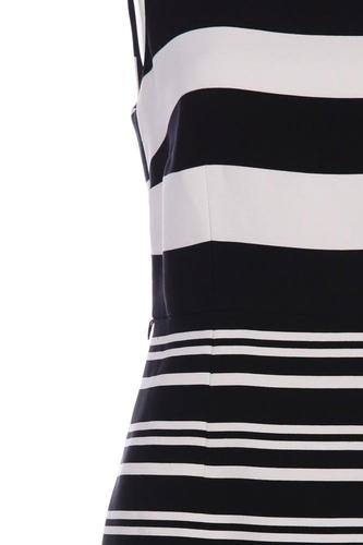 | Details | Jersey, ärmellos, Rundhals, Reißverschluss/Knöpfe hinten, Streifen |