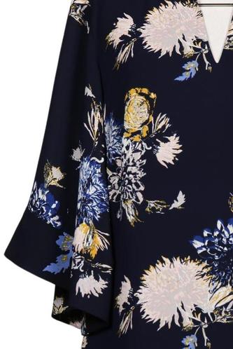 | Details | Jersey, Rüschen, Kurzarm, V-Ausschnitt, Floral |