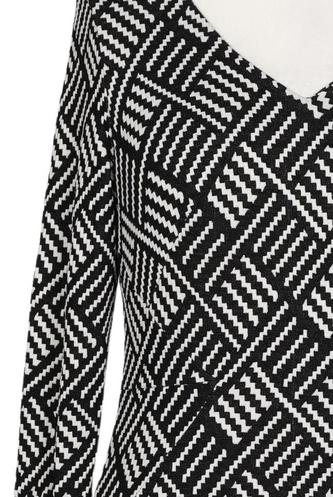 | Details | Grobstrick, Langarm, V-Ausschnitt, Rauten |