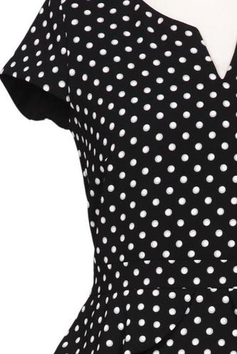 | Details | Kurzarm, V-Ausschnitt, Reißverschluss/Knöpfe hinten, Punkte |