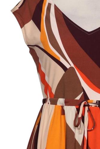 | Details | Kurzarm, Bindegürtel, V-Ausschnitt, Motivprint |
