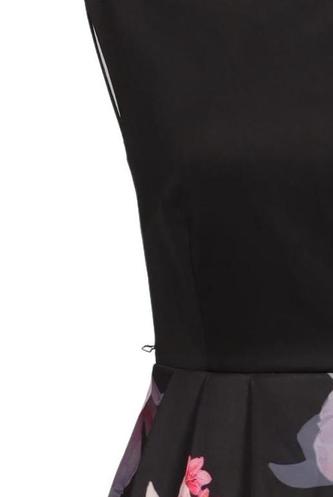 | Details | Satin, Plissee, ärmellos, Rundhals, Reißverschluss/Knöpfe hinten, Floral |