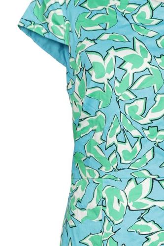| Details | Kurzarm, V-Ausschnitt, Reißverschluss/Knöpfe hinten, Floral |