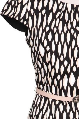 | Details | Kurzarm, Bindegürtel, Rundhals, Reißverschluss/Knöpfe hinten, Motivprint |