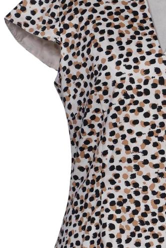 | Details | Kurzarm, V-Ausschnitt, Reißverschluss/Knöpfe hinten, Punkte |