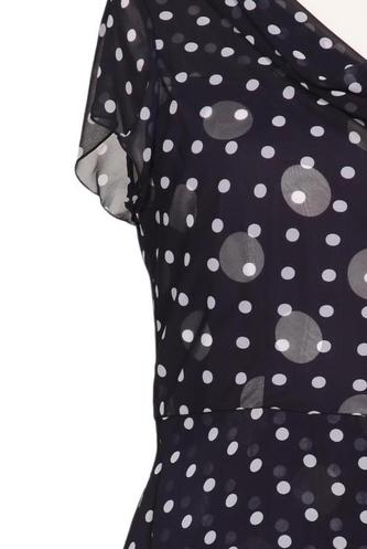 | Details | Chiffon, Kurzarm, V-Ausschnitt, Reißverschluss/Knöpfe hinten, Punkte |