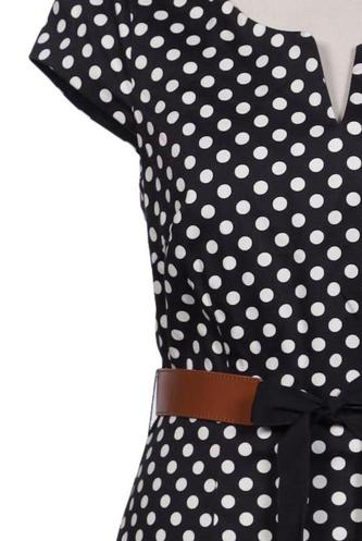 | Details | Kurzarm, Bindegürtel, V-Ausschnitt, Reißverschluss/Knöpfe hinten, Punkte |