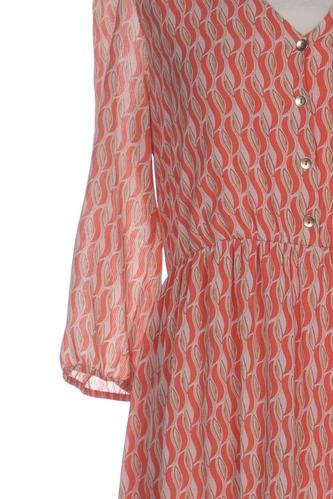 | Details | Rüschen, Chiffon, Dreiviertelarm, V-Ausschnitt, Front Knopfleiste, Motivprint |