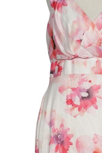 | Details | Satin, ärmellos, V-Ausschnitt, Reißverschluss/Knöpfe hinten, Floral |