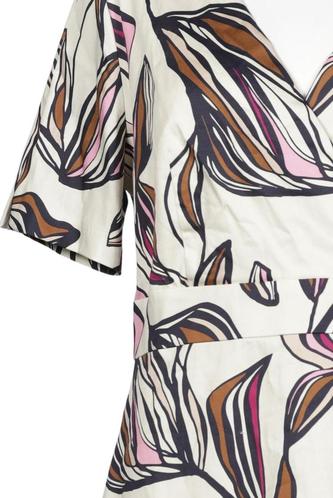 | Details | Kurzarm, V-Ausschnitt, Reißverschluss/Knöpfe hinten, Floral |