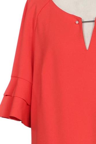 | Details | Jersey, Rüschen, Kurzarm, V-Ausschnitt, Reißverschluss/Knöpfe hinten, Einfarbig |