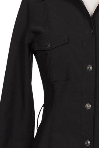 | Details | Dreiviertelarm, Bindegürtel, V-Ausschnitt, Front Knopfleiste, Einfarbig |