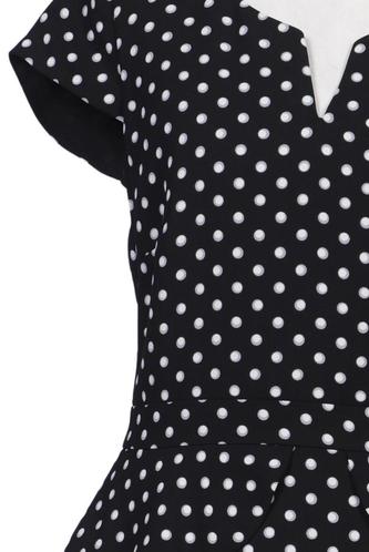 | Details | Kurzarm, V-Ausschnitt, Reißverschluss/Knöpfe hinten, Punkte |