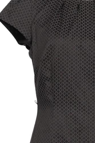 | Details | Kurzarm, V-Ausschnitt, Reißverschluss/Knöpfe hinten, Punkte |