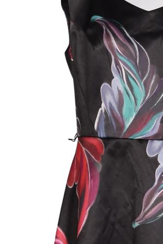 | Details | Satin, ärmellos, V-Ausschnitt, Reißverschluss/Knöpfe hinten, Floral |