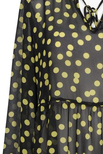 | Details | Rüschen, Chiffon, Langarm, V-Ausschnitt, Punkte |