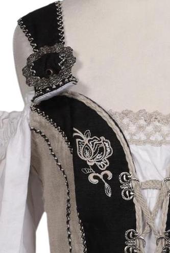 | Details | Stickerei, Schnürung, Spitze, Kurzarm, V-Ausschnitt, Reißverschluss/Knöpfe hinten, Floral |