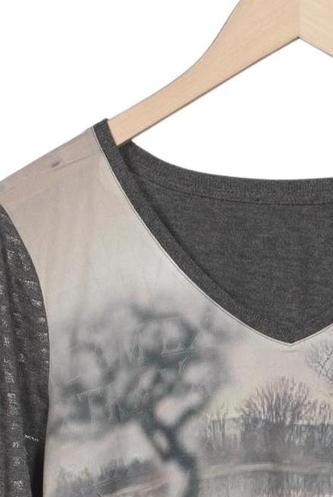 | Details | Jersey, Langarm, V-Ausschnitt, Motivprint |