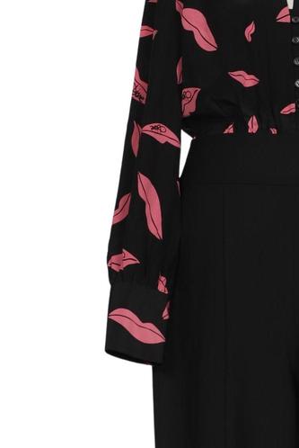 | Details | Langarm, Bindegürtel, V-Ausschnitt, Motivprint |