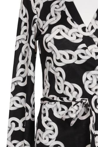 | Details | Langarm, Bindegürtel, V-Ausschnitt, Motivprint |